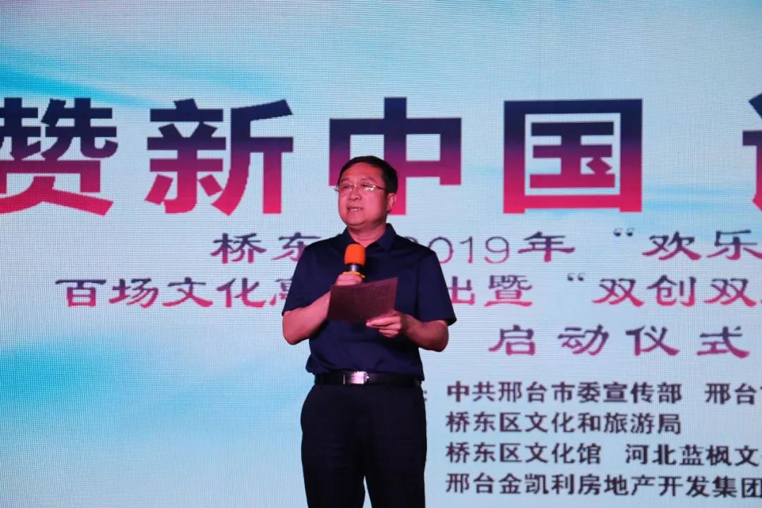 6月14日晚,由中共邢臺(tái)市橋東區(qū)政府、邢臺(tái)市文化和旅游局聯(lián)合主辦的2019年“歡樂新中國 謳歌新時(shí)代”百場文化惠民演出暨“雙創(chuàng)雙服”活動(dòng)七進(jìn)演出在金凱利廣場啟動(dòng)。邢臺(tái)橋東區(qū)委副書記申志寶、橋東區(qū)人大副主任施麗萍、橋東區(qū)政府副區(qū)長劉金紅、橋東區(qū)文化和旅游局局長左麗華、橋東區(qū)文化和旅游局副局長蘭永科、河北藍(lán)楓文化傳媒有限公司總經(jīng)理馮永敏、南長街辦事處、西門里辦事處、祝村鎮(zhèn)辦事處以及金凱利集團(tuán)總裁葛慶達(dá)、總經(jīng)理俞祖放共同出席了本次啟動(dòng)儀式。