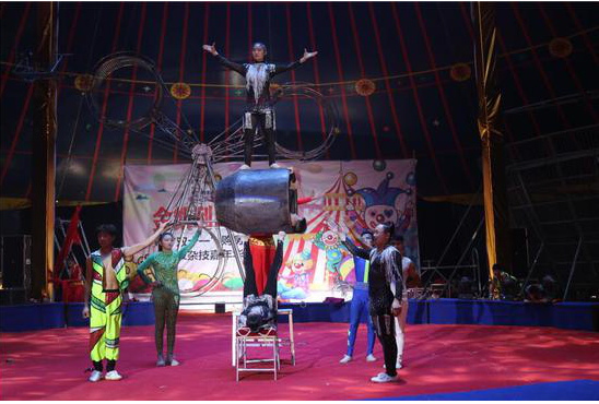 除了這些,雜技團(tuán)還表演了草帽飛舞、同時(shí)轉(zhuǎn)120個(gè)呼啦圈,還有浪橋飛人、雙人飛天等空中雜技。最后的死亡飛輪,演員們用生命挑戰(zhàn)高空+高速,動作驚險(xiǎn)萬分,更是挑戰(zhàn)觀眾心理承受極限。在幾十米空中飛旋、跳躍,沒有防護(hù),沒有鋼絲,只有對伙伴的信任和平日訓(xùn)練的經(jīng)驗(yàn)。